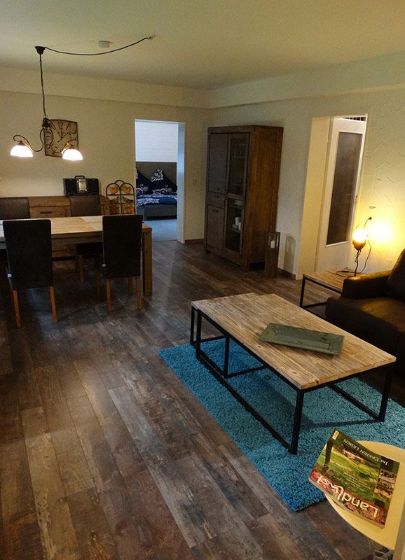 Ferienwohnung für 3 Personen, ruhige Ortslage, neue hochwertige Einrichtung, 65 m², eigener Eingang, Wohnzimmer, Schlafzimmer, komplette Einbauküche, DU/WC, Terrasse (teilweise überdacht) mit Gartennutzung und Gartenmöbel, PKW-Stellplatz, W-LAN, Hifi-Anlage, SAT-TV, Handtücher, Bettwäsche inklusive, Nichtraucher-Wohnung, KEINE Haustiere.